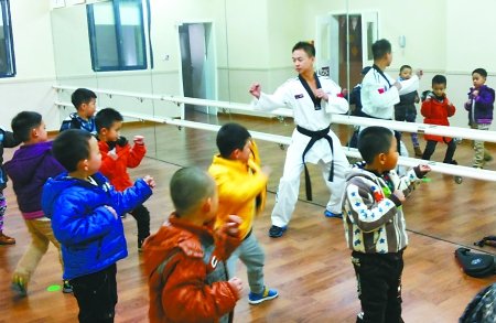冉峰正教孩子们练习跆拳道 受访者供图