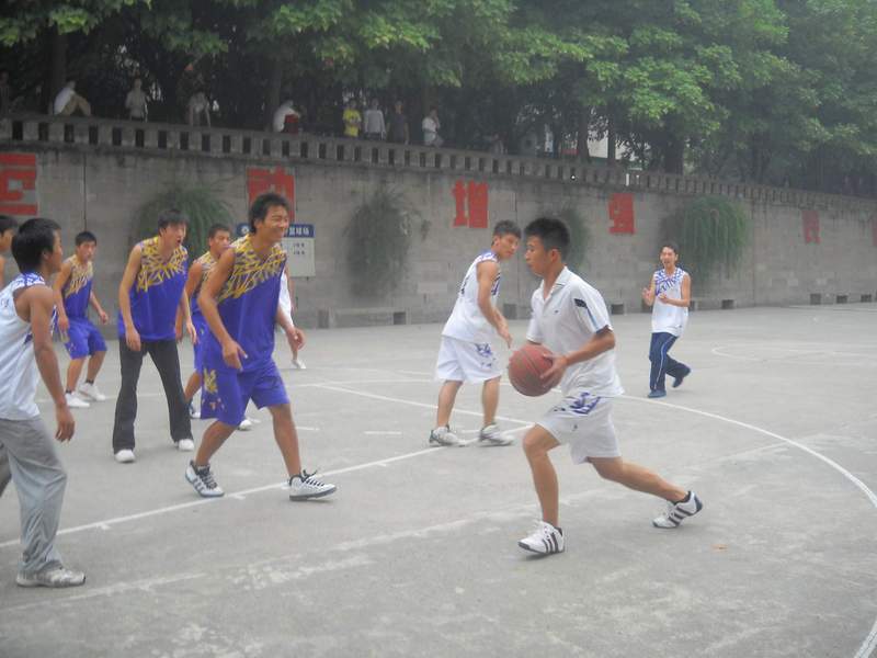 2011年10月10日中午太阳集团tcy8722在南区篮球场举行了最后两场比赛。11级2班队9级一班,10级一班对10级2班。