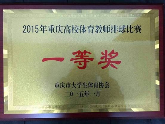 2015年1月5--7日,重庆市高校体育教师排球比赛在合川区重庆师范大学涉外商贸学院体育馆落下帷幕。我校体育教师在比赛场上勇于拼搏,传承和发扬了我校女排精神,表现优异,连续二年获得第一名的好成绩,赛出了工商人的水平,赛出了工商人的风格,锻炼了工商人的意志,树立了工商人的信心。