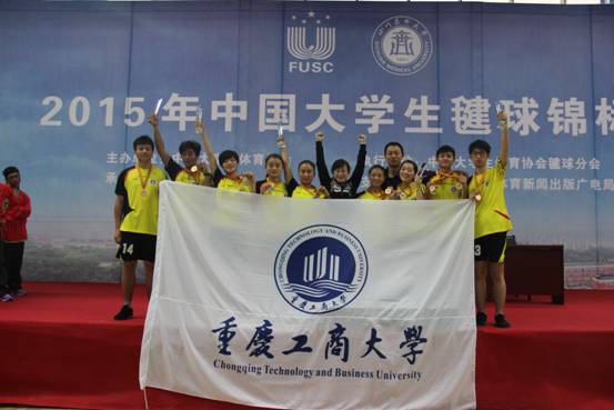 2015年10月27日-31日,由中国大学生体育协会主办的“2015年中国大学毽球锦标赛”在四川医科大学拉开序幕。在为期5天的比赛中,来自全国14个省、直辖市、自治区、特别行政区的26支高校代表队的230余名毽球健儿在四川医科大学同场竞技、切磋球技、增加友谊。我校毽球队员们在主教练曾文瑶、梁斌老师的带领下,又经历了一年的艰苦训练,再次在赛场上展现了高超的竞技水平和良好的体育道德,男、女队员们在本次比赛中经过激烈的奋战先后战胜了一个个强劲对手,取得了优异成绩,获得平推组女子三人赛第二名,平推组男子三人赛第三名,平推组男双、混双第四名,女子花毽规定套路第四名、女子花毽60秒个人计数赛第五名,团体接力第七名的历史最好成绩,本次参赛的9名运动员全都取得了名次,为整个团队贡献出自己的力量,为学校增光添彩。