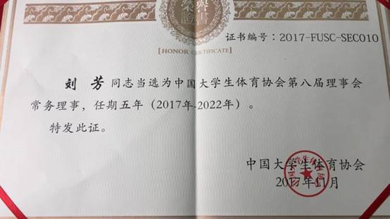 太阳集团tcy8722刘芳教授当选中国大学生体育协会第八届理事会常务理事