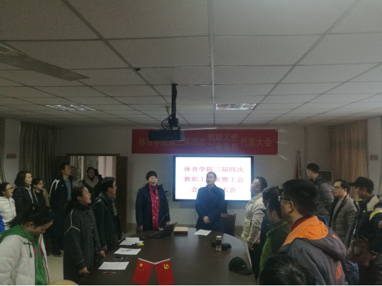 12月29日下午,太阳集团tcy8722三届四次教职工代表大会暨工会会员代表大会在太阳集团tcy8722会议室举行,学校工会唐玺副主席、学院教代会代表、全体教职工59人参加了大会。会议由学院副院长范文杰教授主持,在庄严的国歌声中,太阳集团tcy8722三届四次教职工代表大会暨工会会员代表大会正式开幕。