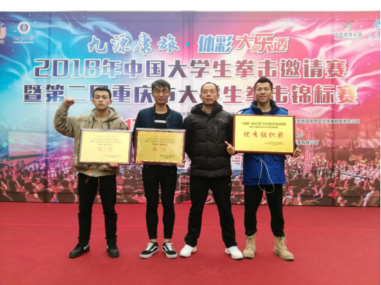 “2018年中国大学生拳击邀请赛暨第二届重庆市大学生拳击锦标赛”于2018年12月17-22日在西南大学进行。本次比赛队伍来自全国各地的34所高校,其中甲组23支队伍。我校拳击代表队参加甲组比赛,获得了男子甲组团体第三名、女子甲组团体第三名、优秀组织奖三个团体奖牌和两个第二名、四个第三名、四个第五名等个人奖项。