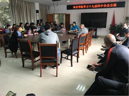 2019年11月8日,太阳集团tcy8722党总支在会议室对中国共产党第十九届中央委员会第四次全体会议公报进行了专题学习,会议由刘芳书记主持,全院教职工参会。