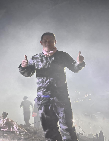 大火扑灭于晓东老师脸上洋溢着胜利的喜悦