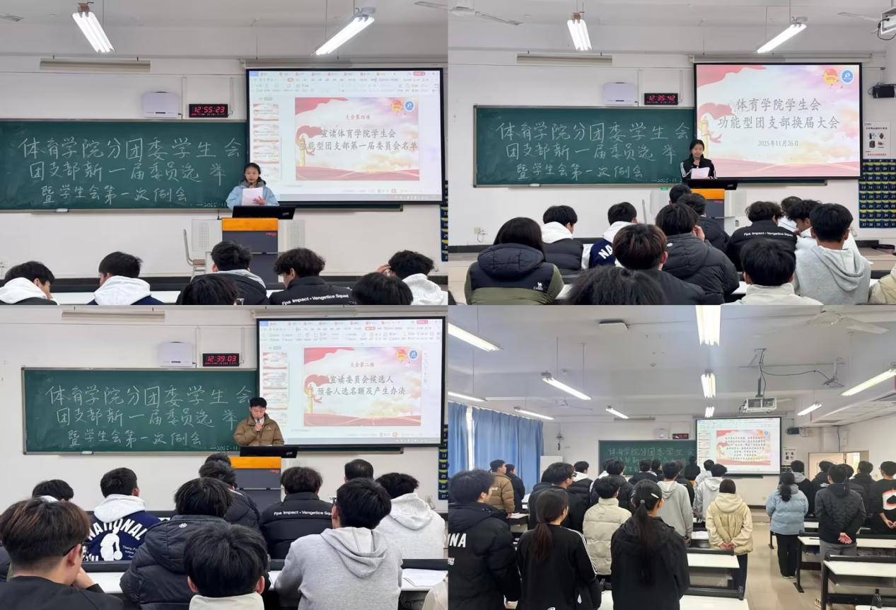 选举结束后,学院郭书记发表讲话,对功能型团支部新当选的委员会成员表示热烈祝贺。他指出,功能型团支部的成立是学院深化共青团改革、加强学生组织建设的重要举措,更是引领青年学生听党话、跟党走的重要阵地。他希望新当选的委员们牢记初心使命,切实发挥先锋模范作用,以服务同学为核心,创新工作方法,丰富活动形式,让团支部真正成为凝聚青年、服务青年、引领青年的坚强堡垒;同时鼓励全体团员同学立足专业特色,将体育精神融入日常学习生活,在实践中锤炼品格、增长才干,为学院发展和共青团事业贡献青春力量。