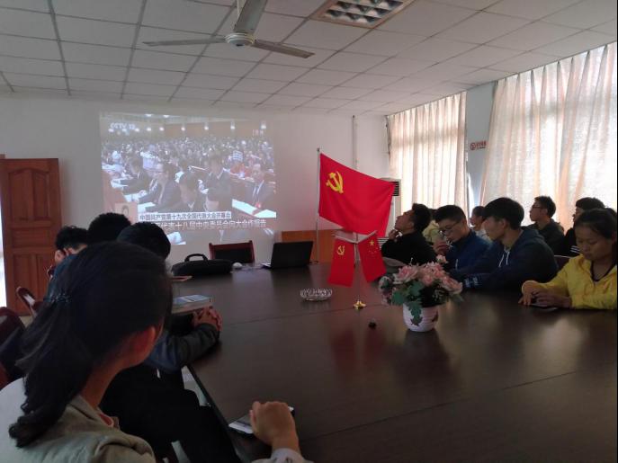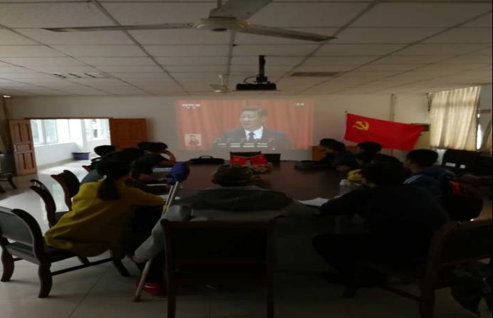 为落实学校党委要求,及时让师生在第一时间了解党的十九大提出的最新思想,在党委宣传部的具体安排和指导下,2017年10月24日中午11点30分,太阳集团tcy8722党总支组织教师、学生党员及入党积极分子在太阳集团tcy8722二楼会议室集中收看党的十九大闭幕会。