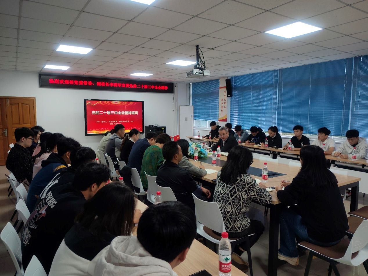 为深入学习贯彻党的二十届三中全会精神和习近平总书记重要讲话精神,深刻领会党的二十届三中全会报告的重大政治意义、理论意义和现实意义,10月11日,我院召开学习贯彻党的二十届三中全会精神宣讲会,校党委常委、副校长李国军做专题宣讲,党总支书记黄谦主持,党总支全体委员、系部主任、学团办主任、工会代表、全体学生党员参加专题学习。