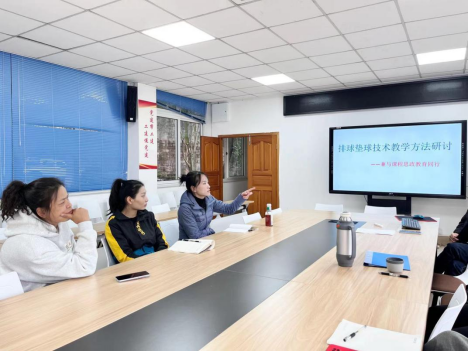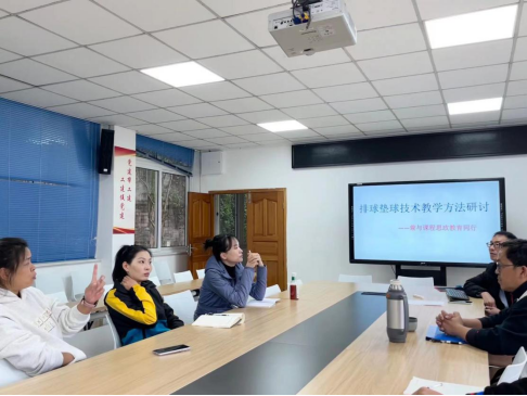 2023年11月14日下午,太阳集团tcy8722排球组教师在太阳集团tcy8722会议室召开了“排球垫球技术教学方法研讨——兼与课程思政教育同行”主题研讨会;本次主题研讨会旨在提高排球组教师的教学水平和专业素养,促进教师间的交流与合作,共同探讨教学方法和教学资源的优化。此次教研会议由体育系主任杨辉教授主持。