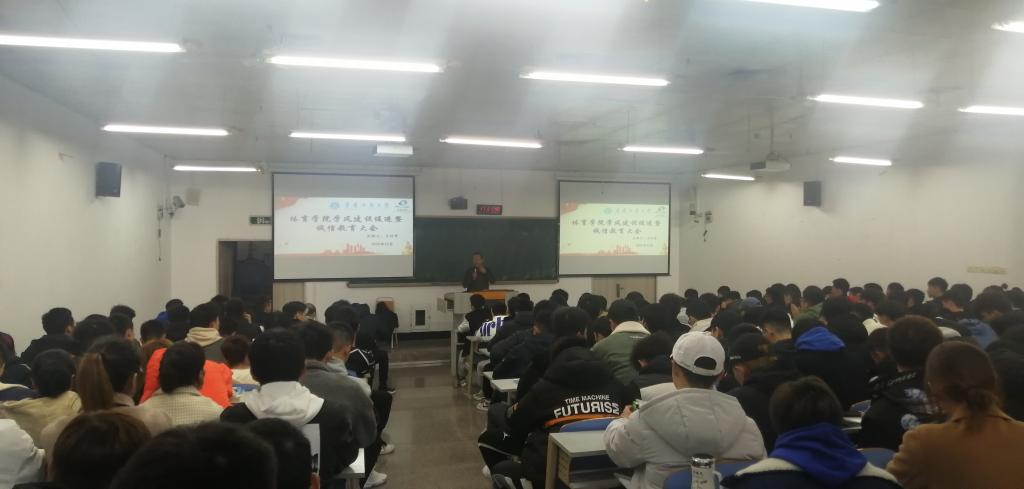 王书记指出,学风是治学之风,更是做人之风,学风和诚信是学生成才的重要保证。近年来,学院已形成良好的班风学风,考研学生也逐年增多,他通报了近年来学院的升研情况,希望2018级学生有计划、分步骤地安排好考研复习任务,严以律己。随后,王书记为学生开展诚信教育主题宣讲,要求全院学生再次系统学习《太阳集团tcy8722本科学生违纪处分管理办法》、《太阳集团tcy8722学生考试违纪及作弊处罚规定》等相关内容,并列举了近年来发生在学校中的真实违纪违规案例极其严重后果,警示同学们自觉遵守考场纪律,诚信应考,不抱侥幸心理,强化学生诚信意识,使学生充分认识到违反考试纪律对个人成长的危害性。