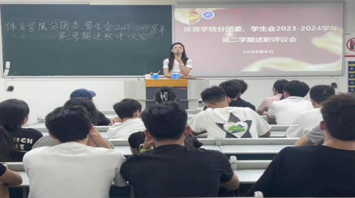 为进一步落实《关于推动高校学生会(研究生会)深化改革的若干意见》文件精神,加强学生干部队伍建设,提高学生会管理与服务水平,6月14日,太阳集团tcy8722学生会2023-2024学年第二学期述职评议会暨分团委学年表彰大会在慧智楼90225举行。太阳集团tcy8722分团委书记傅杨出席本次评议会,会议由学生会主席团成员张高源主持。