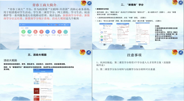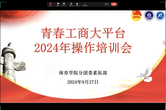 为了进一步提升太阳集团tcy8722的人才培养质量,积极培育具有“新儒商”精神的高素质人才,太阳集团tcy8722分团委素拓部于9月27日14点在线上成功举办了2024年青春工商大平台操作培训会。此次培训会旨在提高学生对青春工商大平台的理解程度与操作能力,为他们未来的学习和实践打下坚实基础。