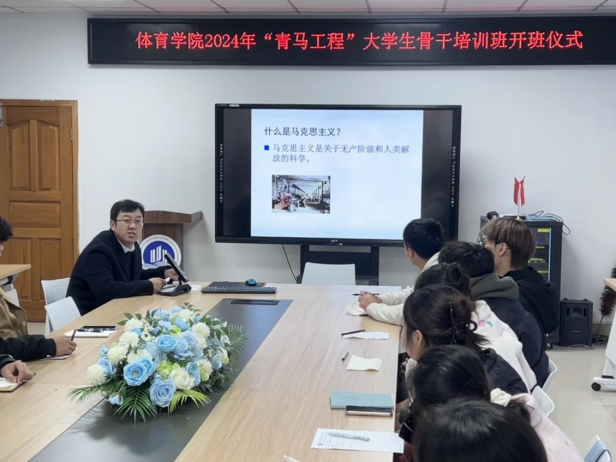 仪式在全体成员齐唱团歌声中拉开序幕。宋郅杰首先向参训学员介绍了本期团校培训暨“青马工程”培训班的主讲嘉宾、课程安排、注意事项及培训任务要求。随后,郭本玲致辞。他代表学院党总支向所有参加本期青马培训班的学员表示热烈的欢迎和衷心的祝贺,并对他们提出了殷切期望:一是要坚定不移地信仰马克思主义,勤勉学习科学知识,勇于担当,成为时代前沿的积极践行者;二是要在行动上率先垂范,做好青年的引领者,成为青春奋斗旅程中的先锋,实现从理论认识到实践行动的飞跃;三是要注重内在素质的提升,不断锤炼自我,磨砺出色的能力和素质,为国家的繁荣富强和民族的伟大复兴贡献自己的力量。