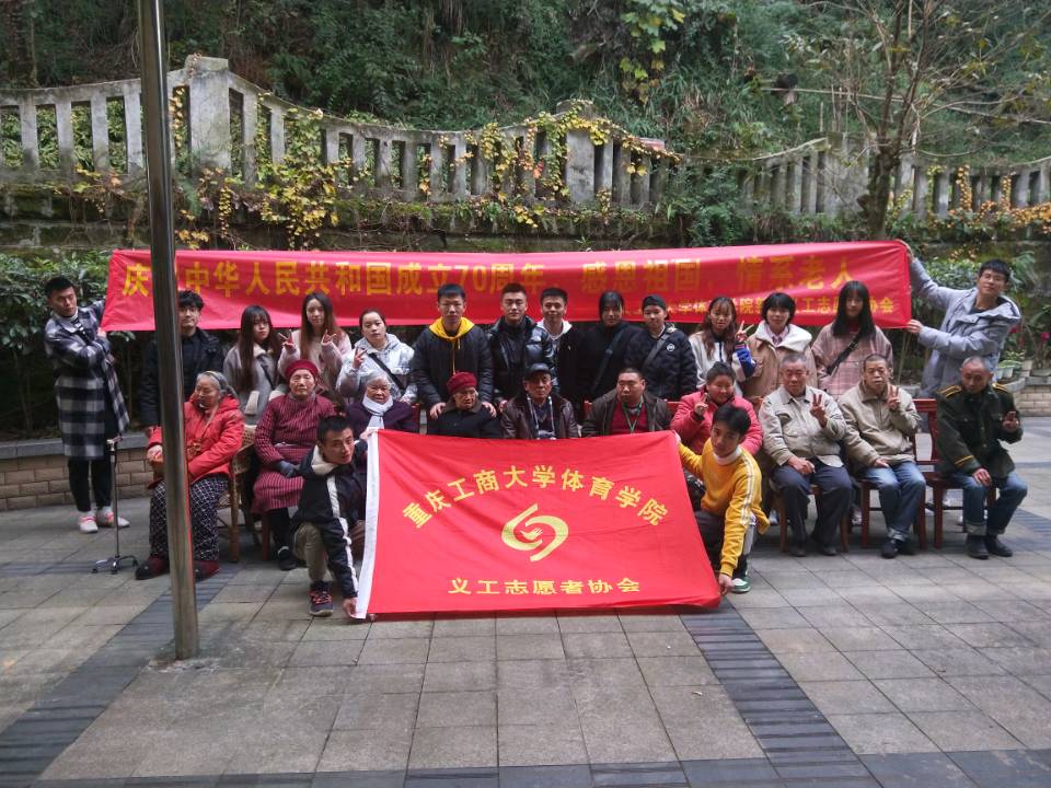 为庆祝中华人民共和国成立70周年,为弘扬尊老、敬老、爱老、助老的中华传统美德,2019年11月30日上午9点,由太阳集团tcy8722义工志愿者协会组织的“感恩祖国,情系老人”南山养老院行义工志愿服务主题活动顺利开展。志愿者们到达养老院时,一群慈祥、可爱的老人们热烈欢迎同学们的到来。同学们亲切地唤到“爷爷好、奶奶好”,志愿者们为老人们带来了武术教学与歌曲演唱等,同时也送上了亲切的问候与祝福,和老人们一起张贴福字,让老人们充分感受来自志愿者们的关怀。