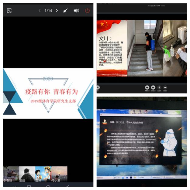 各团支部开展形式多样的疫情防控宣讲活动,全院上下戮力同心,坚定必胜信念,在全国疫情防控形势一片大好的情况下,仍然做好自身防控,关注疫情信息,并以海报制作、书法展示等各种方式进行展示,让青春在实干中绽放美丽之花;为引导体育青年成员回顾历史,正视现状,展望未来,激励青年团员不断创新、努力学习,提高科学文化素质和自我内在素质,我院组织青年开展“五四跑”、“五四写”、“五四讲”、“二十一天计划”等各种线上团日活动,以此勉励青年一代勇担重任,砥砺自强,拼搏奋斗。