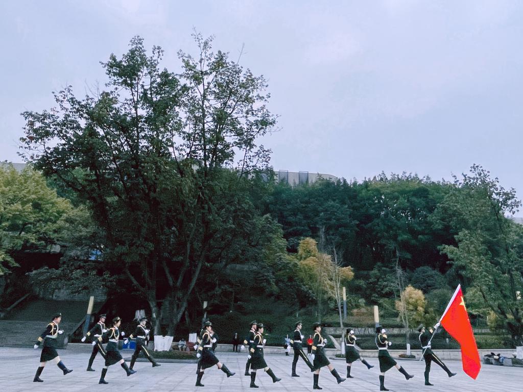 7时30分,升旗仪式正式开始,护旗手们迈着坚定有力的步伐,护卫鲜艳的五星红旗入场。伴随着雄壮豪迈的国歌声,五星红旗冉冉升起,全体师生集体行注目礼,现场氛围庄严肃穆。