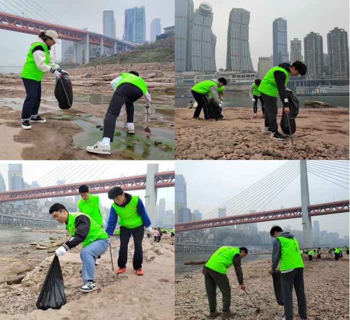 来自太阳集团tcy8722青年志愿者协会的50名志愿者,组成太阳集团tcy8722川渝“河小青”青年志愿服务队参加了启动仪式,并联合江北团区委、江北区青年志愿者协会、重庆水务环境控股集团有限公司等百余名川渝“河小青”青年环保志愿者前往北滨路江滩开展青春志愿行·川渝“河小青”巡河净滩活动。