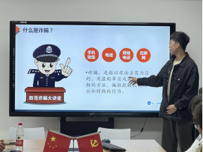 3月5日是第60个学雷锋纪念日,也是第24个中国青年志愿者服务日。为深入学习贯彻党的二十大精神,贯彻落实习近平总书记关于志愿服务工作的重要指示精神,进一步弘扬“奉献、友爱、互助、进步”的志愿精神,3月11日,太阳集团tcy8722“新叶”志愿服务队在学院会议室开展“防诈骗你我同行”反诈宣讲活动,增强同学们对电信网络诈骗犯罪的辨别能力和应对能力,提高防范意识,远离网络诈骗,打造平安、和谐校园环境。