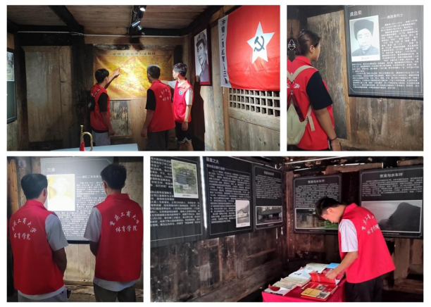 实践成员驻足观看红军革命纪念馆的历史图片和红色文物