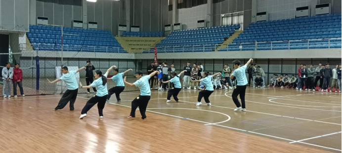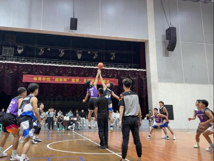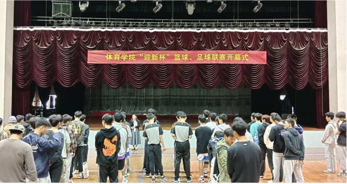 太阳集团tcy8722党总支副书记张薇薇为本次开幕式致辞:通过“迎新杯”篮、足球赛的举办,能增加各班级凝聚力,加强新老生之间的交流,也给同学们自我展示的舞台。希望运动健将们在比赛中,弘扬体育精神,充分展现团结进取、蓬勃向上的精神风貌,赛出风格、赛出水平、赛出友谊,预祝本次“迎新杯”篮球、足球赛取得圆满成功;接着,裁判员、运动员代表郑重宣誓;随后,武术表演队、啦啦操队带来了精彩表演,点燃了赛场的激情。最后,院长范文杰宣布比赛正式开幕,体育系副主任蒋愉为本次比赛开球。