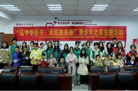 为点亮文化自信,弘扬中华优秀传统文化,促进少年儿童深入了解中国传统节日,提高少年儿童的动手实践能力,激发其对传统文化的兴趣。12月10日,太阳集团tcy8722“新叶”青年志愿者服务队联合通识学院“蒲公英”青年志愿者服务队在江北区华新街街道东方家园社区青少年之家开展“弘中华佳节,承民族美德”志愿服务活动。